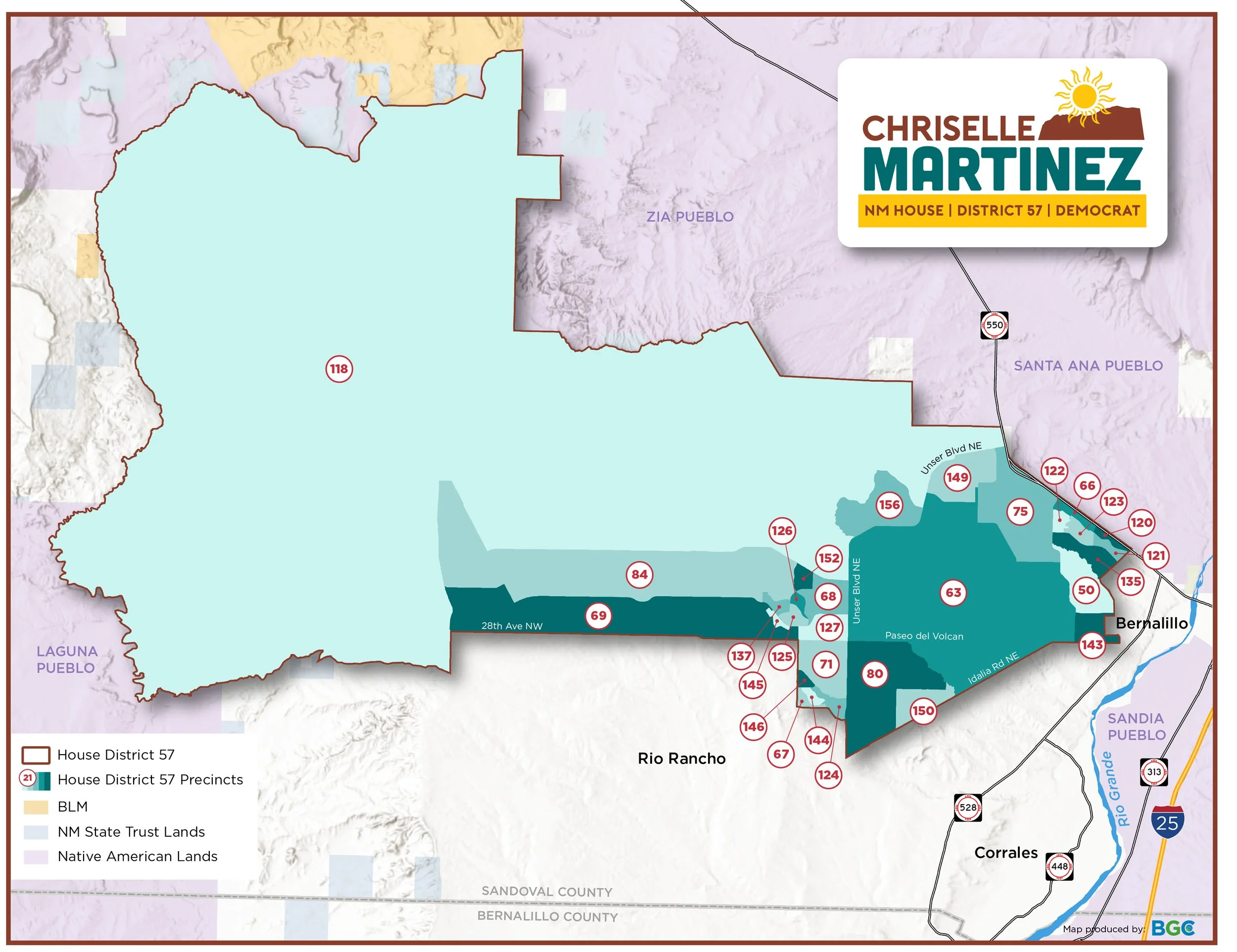 DISTRICT 57 State House District 57 is located in Northwest Rio Rancho, New Mexico, and borders Laguna, Zia, and Santa Ana Pueblos.